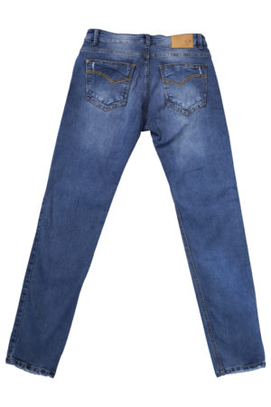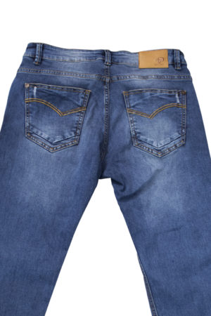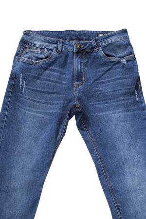 Jean de hombre con detalle de desgaste y bolsillos clásicos.