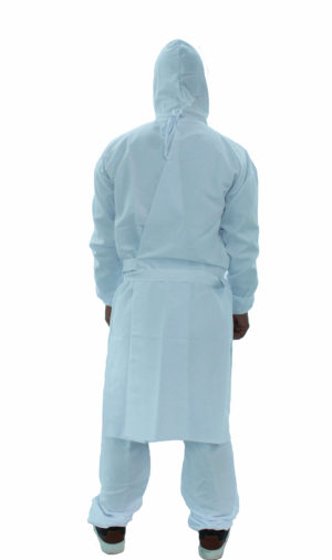 Tela con acabado antifluido que repele o disminuye la capacidad de absorción a líquidos y factores